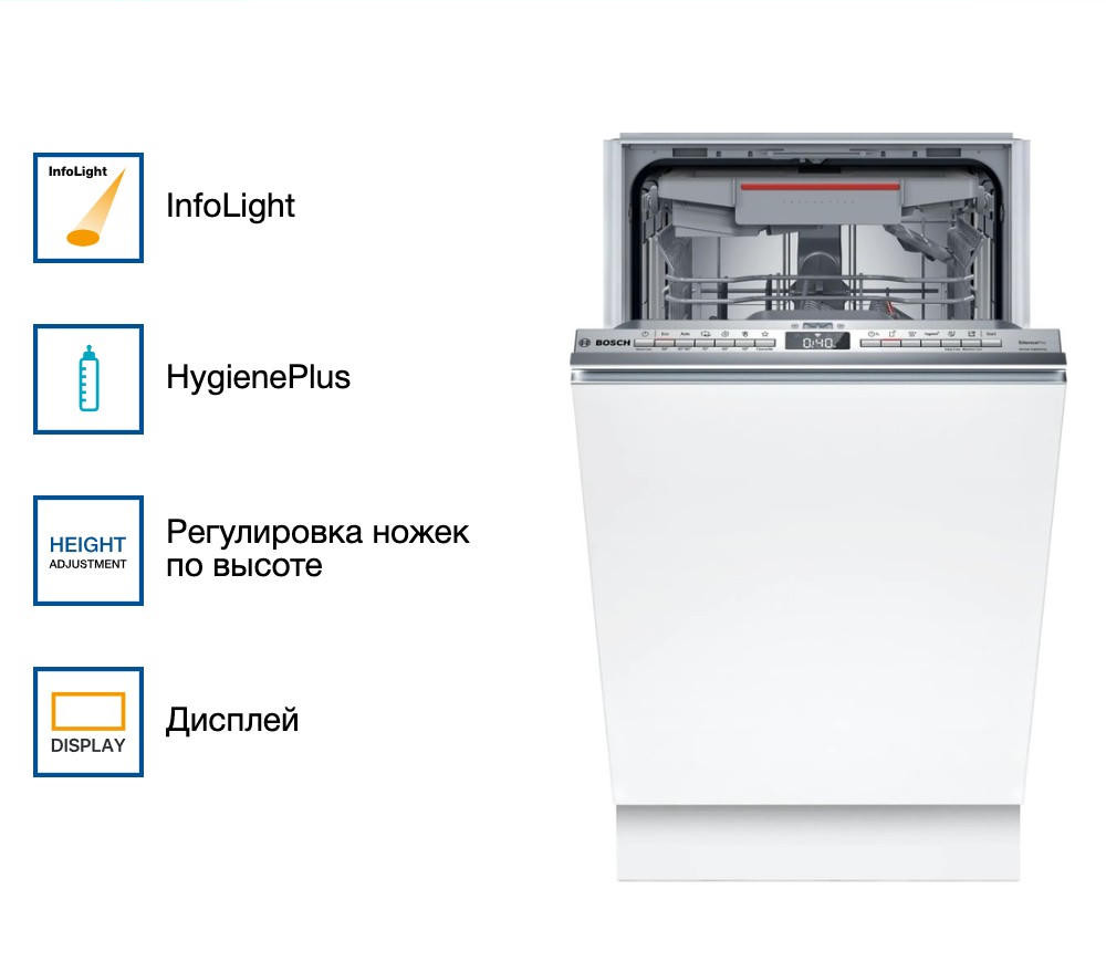 Встраиваемая посудомоечная машина Bosch SPV6EMX65Q - это уникальное сочетание элегантного дизайна и передовых технологий. Узкая модель с нержавеющей стальной панелью управления идеально впишется в любой интерьер, занимая минимум пространства.