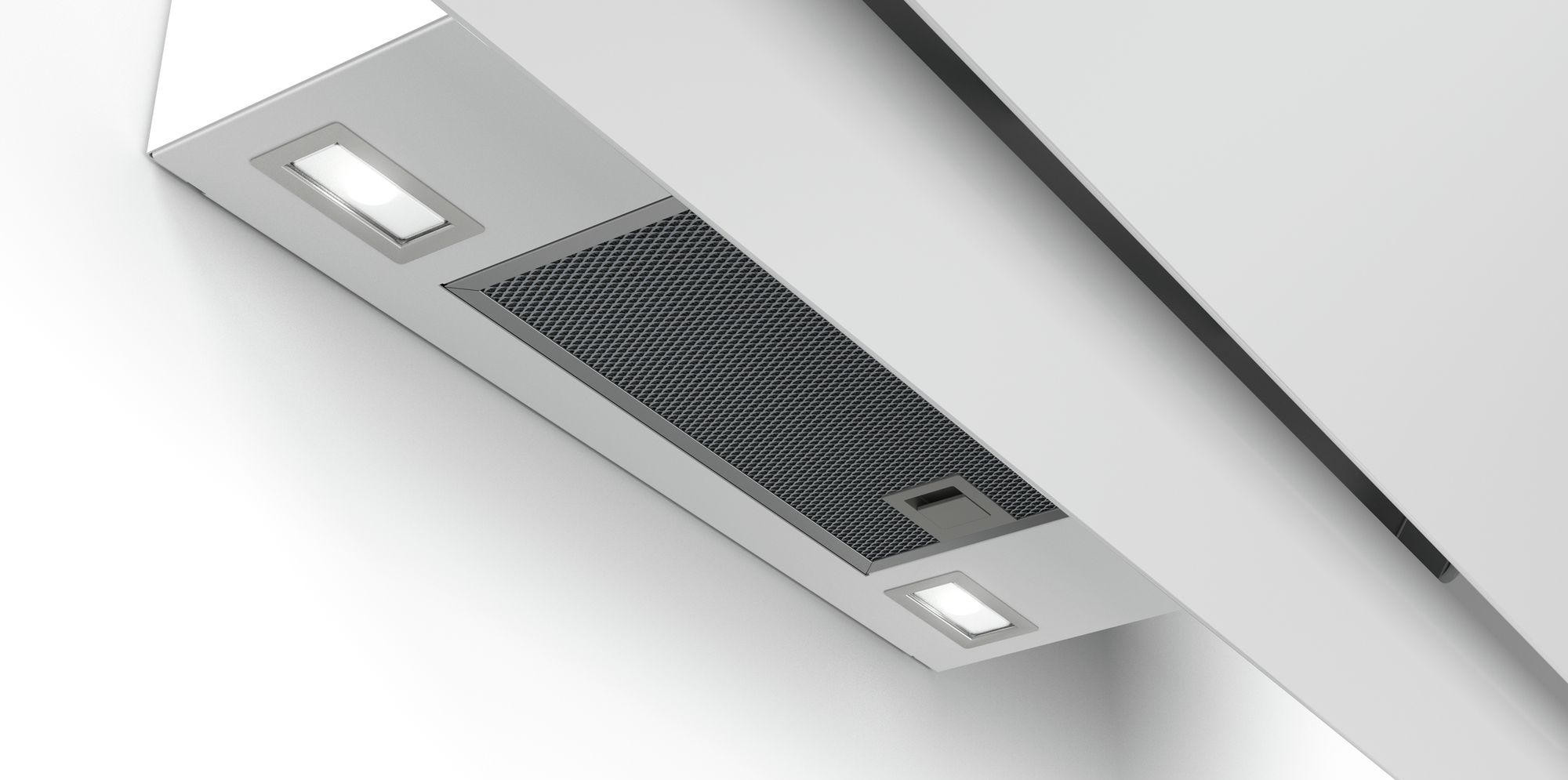 Возможен монтаж без воздуховода для работы только в режиме рециркуляции, для этого понадобится приобрести специальный комплект. Алюминиевый жировой фильтр можно мыть в посудомоечной машине.