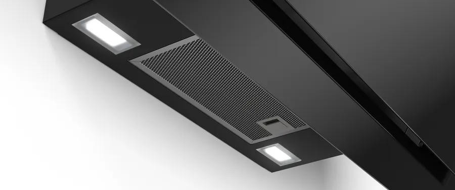 Вытяжка Bosch DWK97HM61T — это уникальное сочетание инновационных технологий и стильного дизайна. Представленная модель выполнена в строгом черном цвете, который подчеркивает ее современность и элегантность. Корпус из нержавеющей стали и стеклянный экран не только придают изделию привлекательный внешний вид, но и обеспечивают его долговечность и надежность. При монтаже модель можно установить на стену, что позволяет сэкономить пространство на кухне. Размеры вытяжки составляют 92.9 см в высоту (максимальная высота — 125.8 см), 89 см в ширину и 49.9 см в глубину, что делает ее достаточно компактной и удобной для использования. Управление вытяжкой осуществляется с помощью сенсорных элементов типа TouchSelect, что обеспечивает простоту и удобство использования. На дисплее отображается вся необходимая информация о режимах работы и скорости вентилятора.