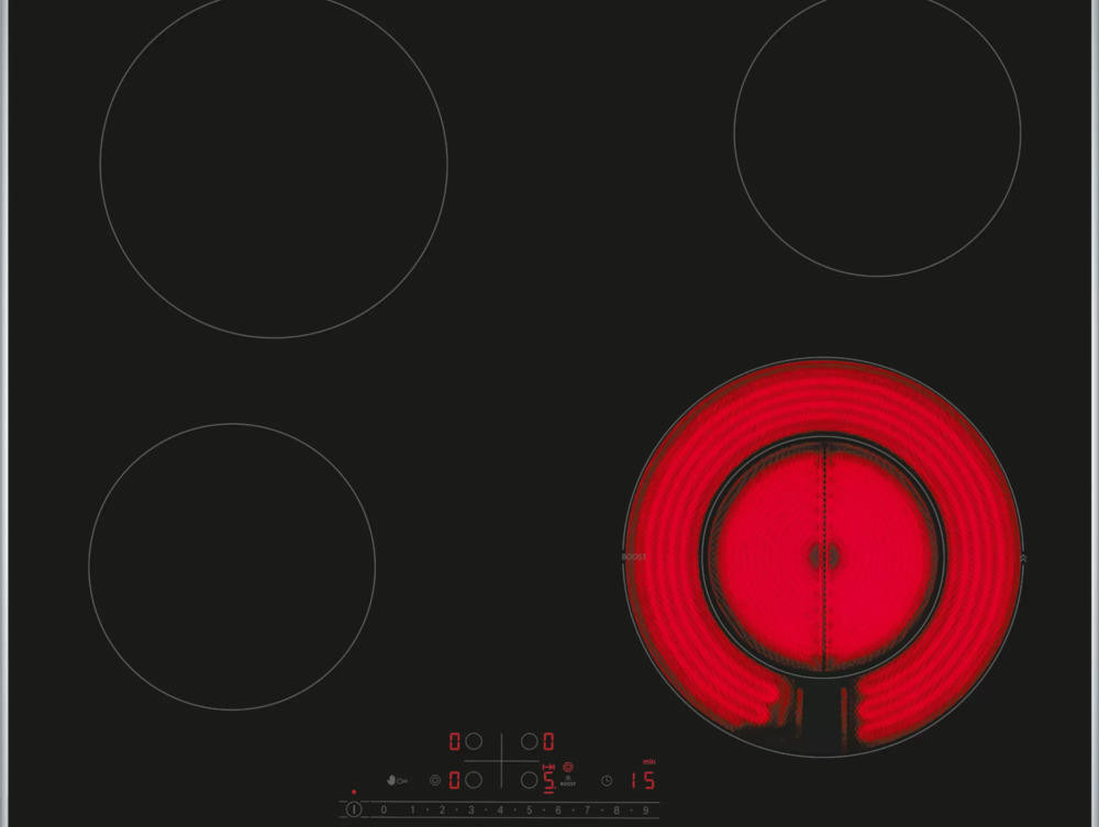 Панель оснащена четырьмя конфорками, одна из которых — двухконтурная. Это позволяет вам готовить различные блюда одновременно, экономя время и энергию. Каждая конфорка имеет индивидуальный таймер с функцией отключения, что обеспечивает безопасность использования и предотвращает перегрев продуктов.