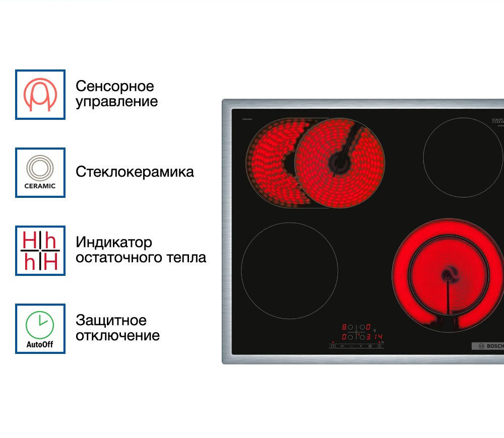 Варочная панель Bosch PKN 645 BB2E представлена в элегантном черном цвете с рамкой из нержавеющей стали. Имеет одну двухконтурную конфорку, на которой вы можете готовить в посуде разного размера. Защитное отключение и индикаторы остаточного тепла повышают уровень безопасности. Таймер с отключением для каждой конфорки позволит настроить время приготовления и заниматься другими делами.