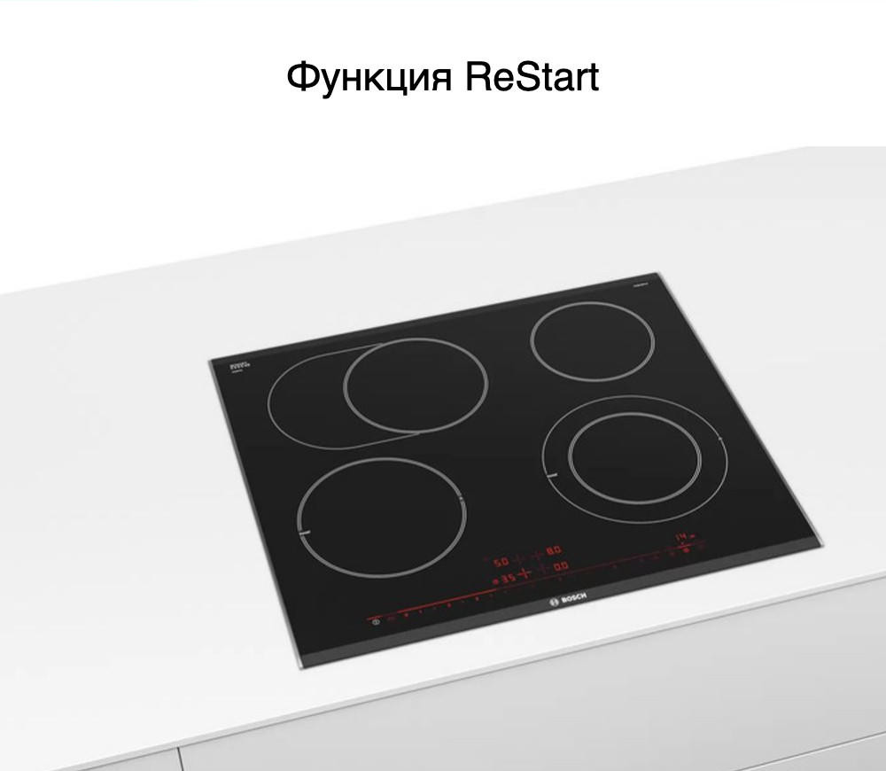 Управление построено на сенсорной системе DirectSelect Premium: все настройки выбираются одним касанием, а шкала из 17 уровней мощности позволяет тонко регулировать температуру для разных блюд. Дополнительные функции — поддержание тепла и ReStart — повышают удобство, позволяя сохранять выбранные параметры или поддерживать температуру готового блюда до подачи.