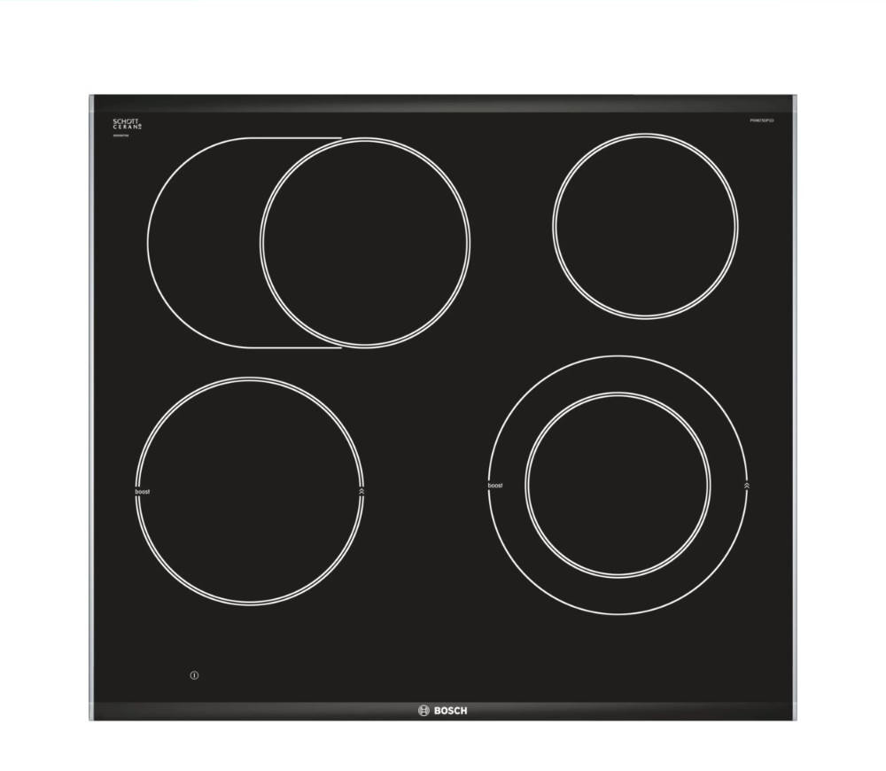 Варочная панель Bosch PKN675DP1D в черной стеклокерамике отличается лаконичным, но выразительным дизайном. Металлический кант по бокам придает устройству современный характер и делает его гармоничным элементом любой кухни. Компактные габариты — 60.6 см в ширину, 52.7 см в глубину и 4.4 см по высоте — позволяют легко встроить панель в стандартную нишу 56-56.2 x 50-50.2 см, сохраняя аккуратный внешний вид рабочей зоны.