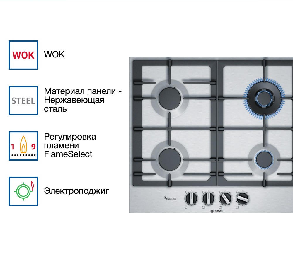 WOK-конфорка обеспечивает быстрый нагрев и экономию времени. Плавный ход регуляторов позволяет точно настраивать мощность пламени.