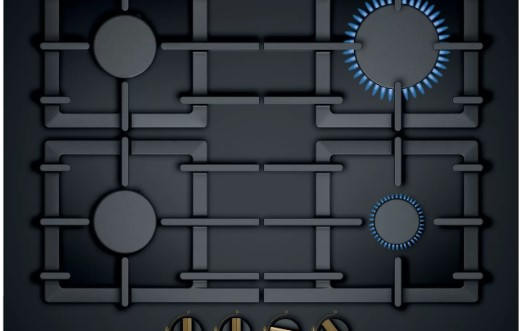 Органы управления у варочной панели Бош PPP6В690R находятся посередине оборудования, чтобы исключить риск соприкосновения с горячей посудой. Включение и управление газом осуществляется механическими поворотными ручками.