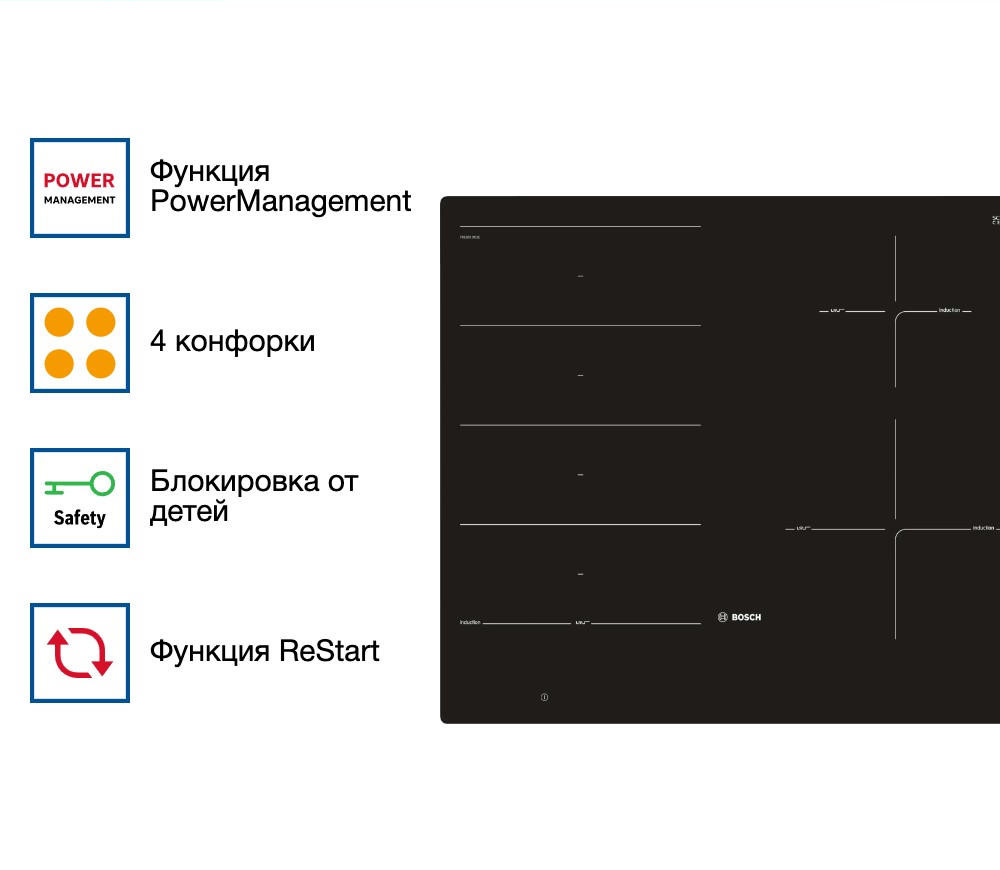 - Функция PowerBoost обеспечивает быстрый нагрев без потери контроля над процессом готовки.