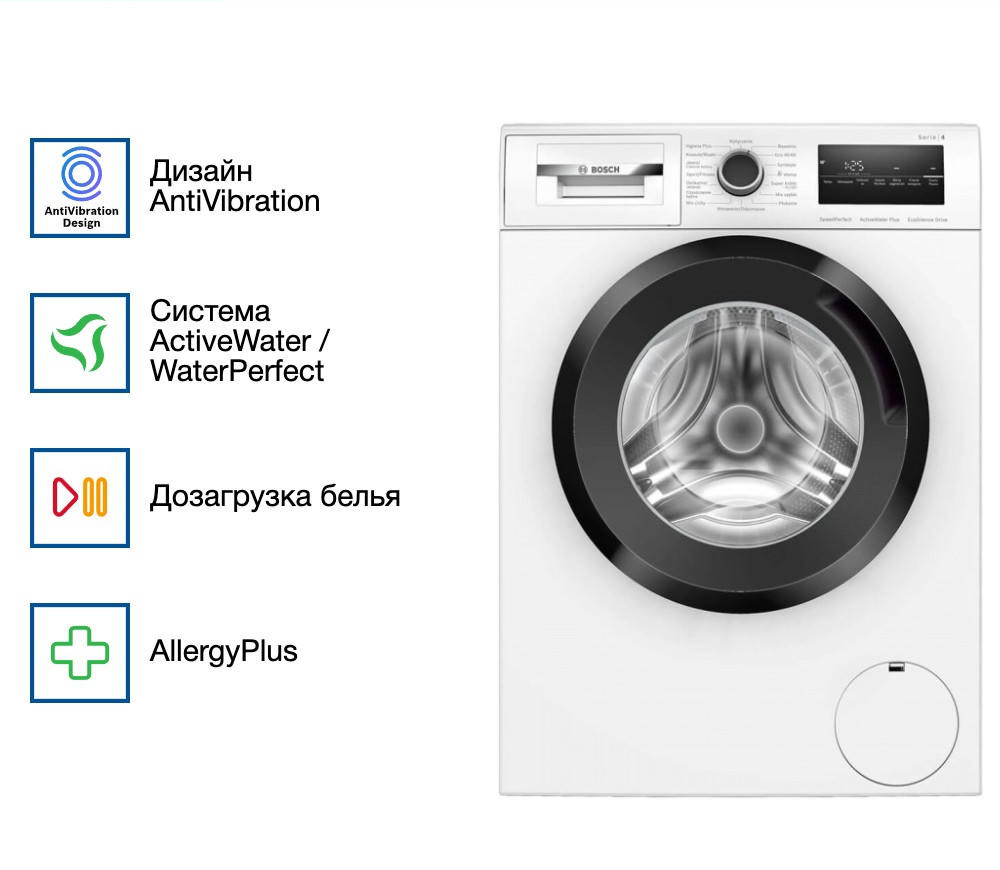 Стиральная машина Bosch WAN2010FPL ориентирована на стабильную и понятную работу в бытовых условиях. Светлый корпус делает модель нейтральной по дизайну и позволяет без труда разместить её в любом жилом помещении — от ванной комнаты до кухни. Отдельностоящая установка не требует встраивания и даёт свободу при выборе места, а фронтальная загрузка остаётся удобным и привычным форматом для повседневного использования.