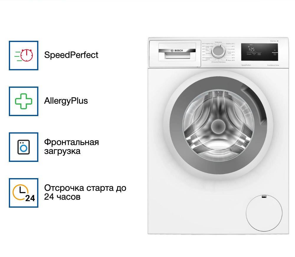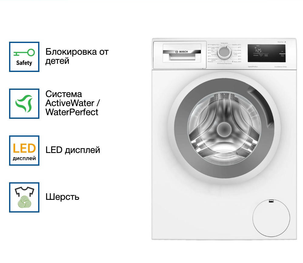 Стиральная машина Bosch WAN2401BPL представляет собой высококачественное устройство, в котором современные технологии сочетаются с простотой и удобством использования. Она оснащена фронтальной загрузкой, что делает ее удобной для размещения в любом помещении, будь то ванная комната или кухня. Максимальная загрузка при стирке составляет 8 кг, что позволяет загружать достаточное количество белья за одну стирку. Максимальная скорость отжима достигает 1200 оборотов в минуту, что обеспечивает эффективное удаление влаги из белья.