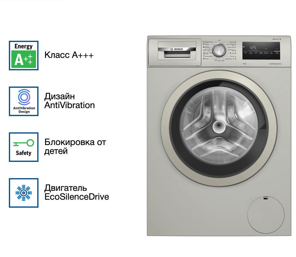 Многоступенчатая защита от протечек и надёжная блокировка от детей исключают риски при эксплуатации. Всё это превращает Bosch WAN2420XME не просто в бытовой прибор, а в надёжного помощника, который бережёт одежду и способствует спокойной, комфортной атмосфере в доме.
