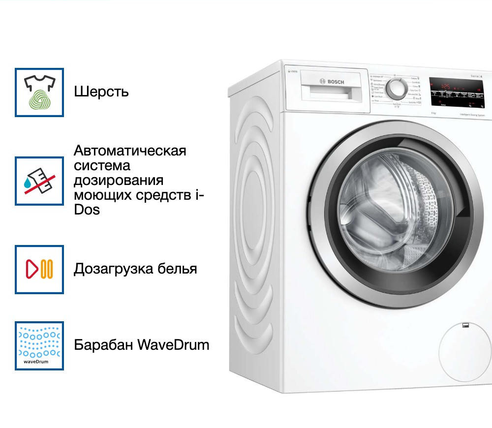 Особенностью этой модели является система ActiveWater / WaterPerfect, которая обеспечивает оптимальное использование воды. Кроме того, в машине применяется технология VarioPerfect, которая позволяет сократить время стирки и снизить энергопотребление. Есть также автоматическая система дозирования моющих средств i-Dos, которая позволяет сэкономить на стиральном порошке. Машина оснащена инверторным двигателем EcoSilenceDrive, который обеспечивает тихую и эффективную работу. Барабан из нержавеющей стали WaveDrum обеспечивает бережную стирку, а дизайн AntiVibration снижает вибрацию и шум при работе. Машина имеет класс энергопотребления C, что делает ее экономичной в использовании. Страна-производитель: Евросоюз. В машине предусмотрена блокировка от детей и многоступенчатая защита от протечек воды. Это делает использование машины безопасным и удобным. Белый цвет корпуса и современный дизайн делают эту модель стильным дополнением к интерьеру любой ванной комнаты или прачечной.