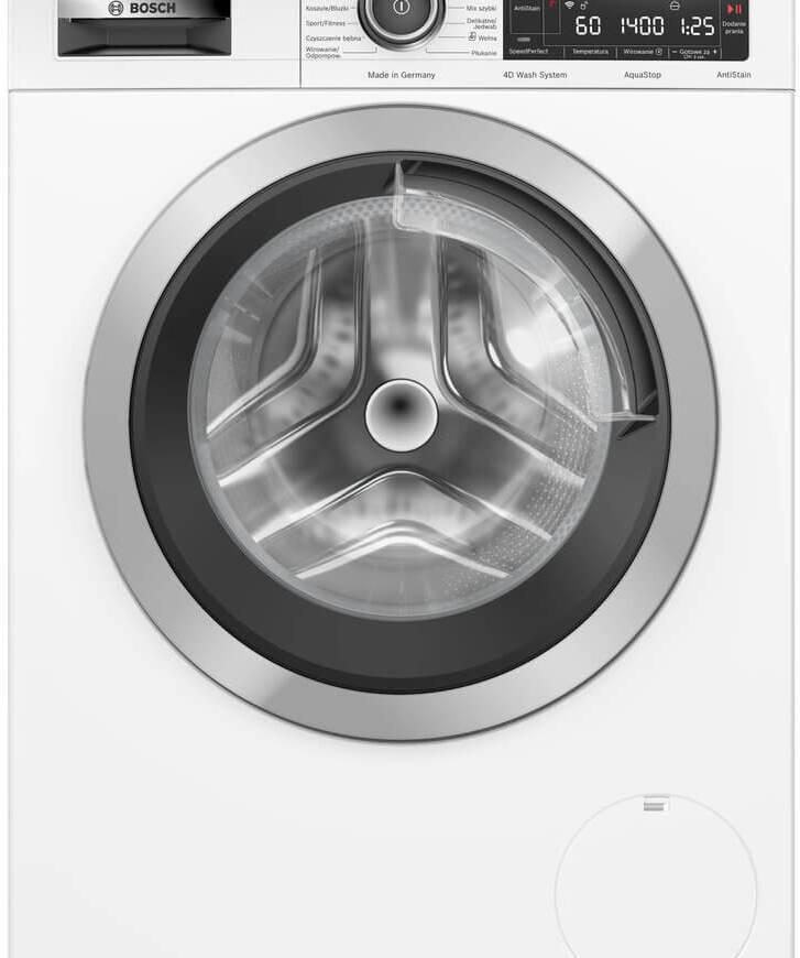 Функция Home Connect позволяет управлять машиной дистанционно, что добавляет удобства в использовании. Стиральная машина оснащена технологией 4D Wash System и системой ActiveWater / WaterPerfect, которые обеспечивают эффективное и экономичное использование воды. Автоматическое выведение пятен AntiStain и функция легкой глажки помогают справиться даже с самыми сложными загрязнениями и упрощают уход за бельем после стирки. Модель обладает инверторным двигателем EcoSilenceDrive и барабаном VarioDrum из нержавеющей стали, что гарантирует тихую и эффективную работу машины. Дизайн AntiVibration обеспечивает стабильность работы, а защита от протечек воды AquaStop и блокировка от детей обеспечивают безопасность использования. Стиральная машина Bosch WAVH8M92PL имеет класс энергопотребления A и класс эффективности стирки A, что подтверждает ее высокую энергоэффективность и экономичность. Максимальная скорость отжима составляет 1400 оборотов в минуту, что обеспечивает хорошую сушку белья после стирки.