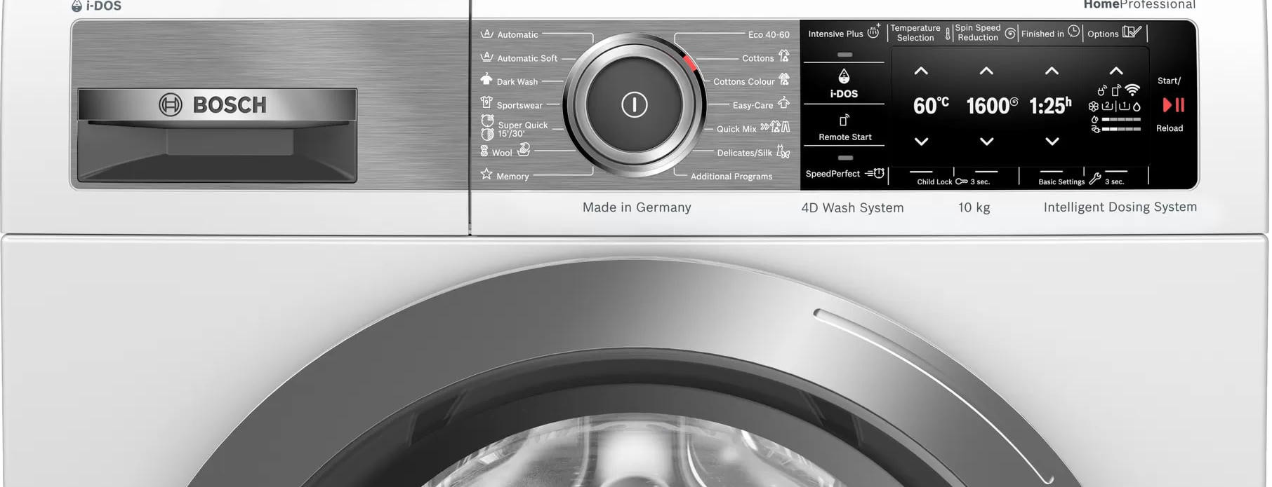 Стиральная машина Bosch Home Professional WAX32EH0BY — модель с объемом барабана 70 л и максимальной загрузкой 10 кг. 14 программ и четыре функции помогут идеально и аккуратно отстирать любые типы тканей и виды одежды без потери их качества. Технология удаления пятен «AntiStain» — в автоматическом режиме удалит 16 типов загрязнения. Интуитивно понятное электронное управление с TFT-дисплеем для отображения параметров стирки облегчит эксплуатацию прибора. Технология Home Connect отправит уведомление об окончании стирки. Достаточно через приложение указать, к какому времени белье должно быть готово.