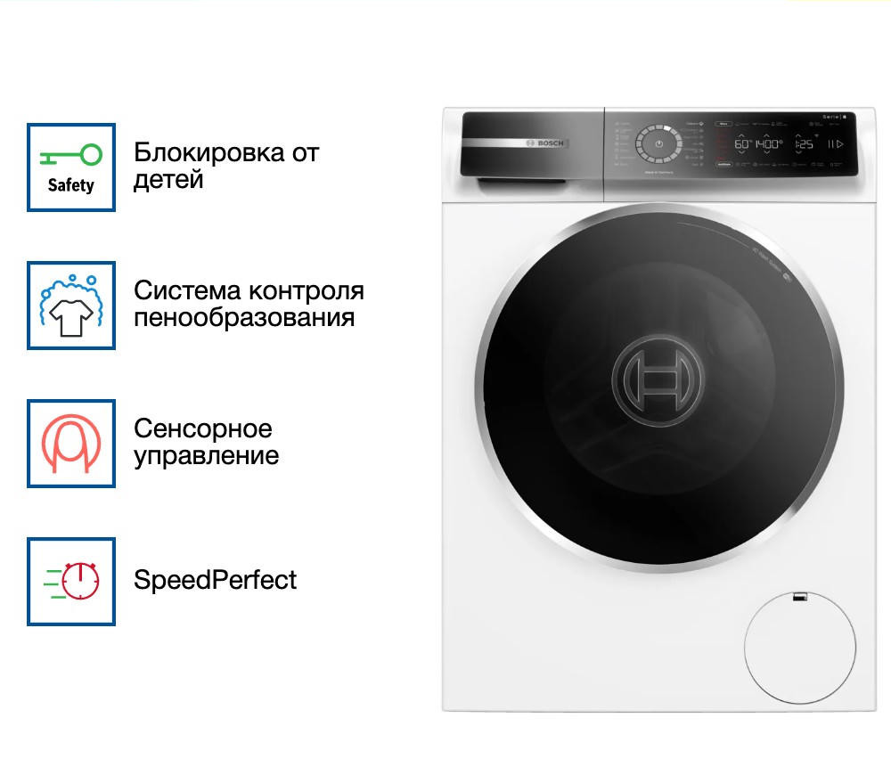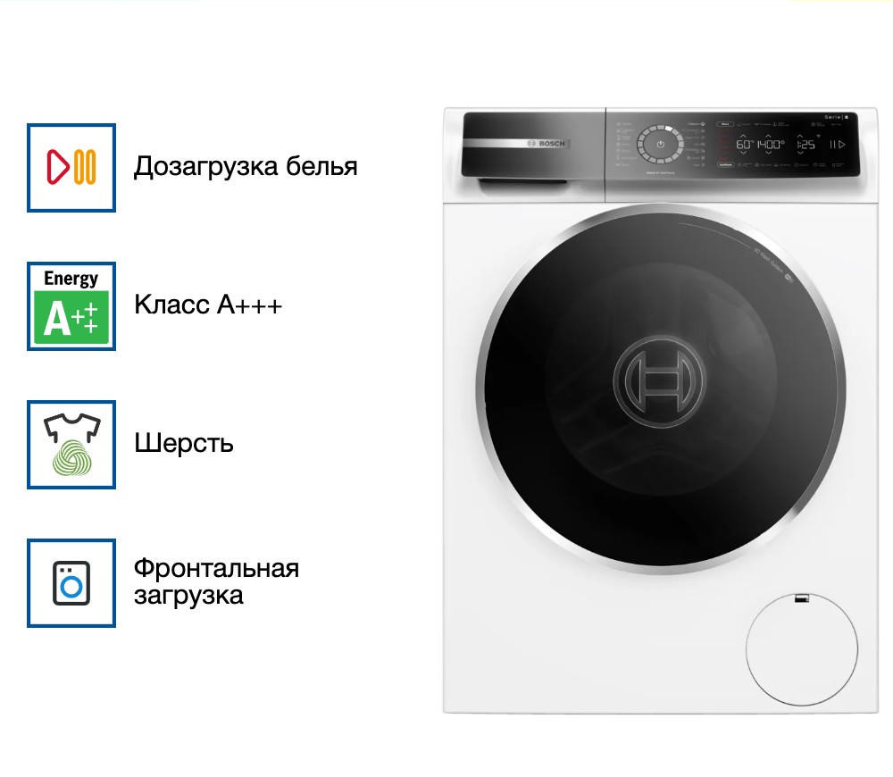 Стабильная и надежная стиральная машина Bosch WGB24400ME превратит рутину стирки в простой и удобный процесс. Произведенная в Германии, эта модель отличается высоким качеством исполнения и продуманным дизайном. Благодаря своим компактным размерам и классическому белому цвету, она легко впишется в любой интерьер, подчеркивая его стиль и элегантность. Одним из ключевых преимуществ Bosch WGB24400ME является ее вместительность. Максимальная загрузка при стирке составляет 9 кг, что делает эту модель идеальным выбором для больших семей.