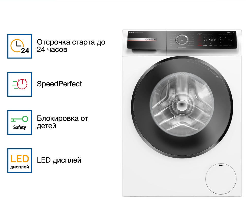 Bosch WGB244ALSN подходит для разных сценариев использования — от повседневного ухода за одеждой до аккуратной обработки шерстяных и спортивных изделий. Поддержка Home Connect позволяет контролировать процесс через смартфон, а функция дозагрузки дает возможность добавить забытые вещи уже после запуска программы.