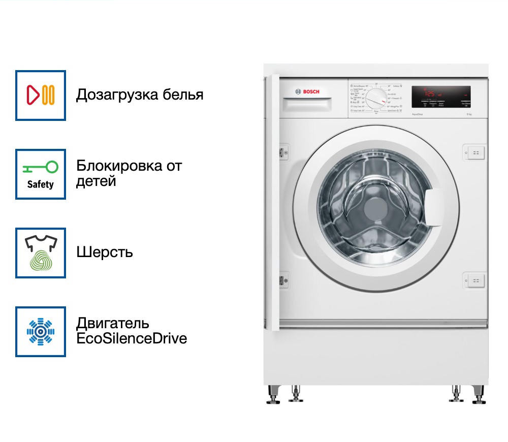 Встраиваемая стиральная машина Bosch WIW24342EU из серии Serie 6 разработана как практичное решение для современных интерьеров, где важны аккуратный внешний вид и продуманная функциональность. Светлый оттенок корпуса делает модель универсальной для кухни или ванной комнаты, а полностью встраиваемая конструкция позволяет скрыть технику за мебельным фасадом и сохранить целостность пространства. Такой формат особенно удобен для тех, кто ценит порядок и визуальную гармонию.