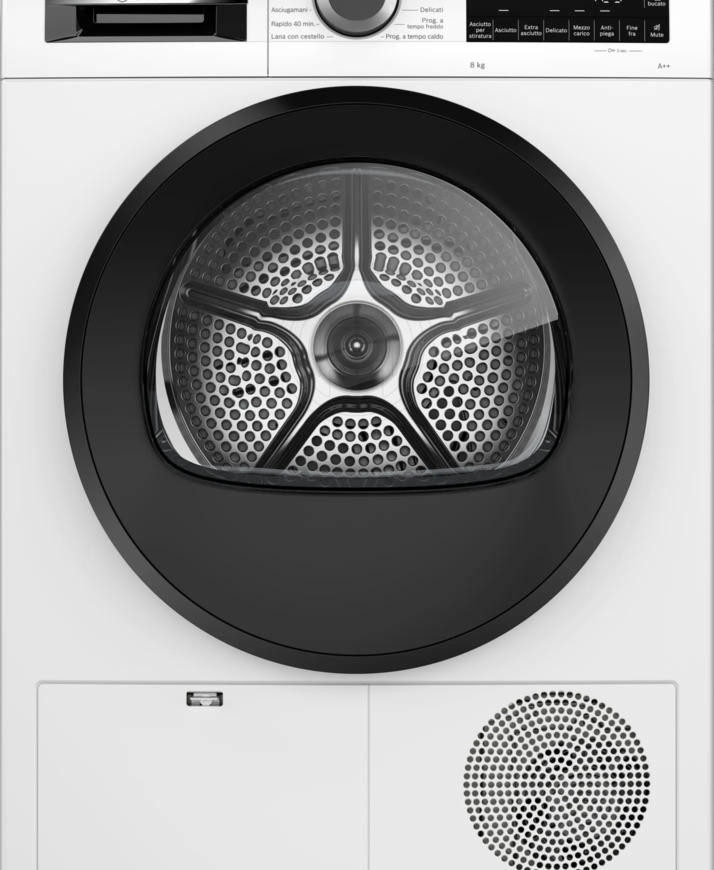 Сушильная машина Bosch WQG23100IT обладает антивибрационным дизайном, боковые стенки по бокам гасят вибрацию при работе. Имеется быстрая программа, которая за 40 минут высушит небольшие количества вещей. Система Auto Dry автоматически определяет сухость и влажность вещей, благодаря температурным датчикам.