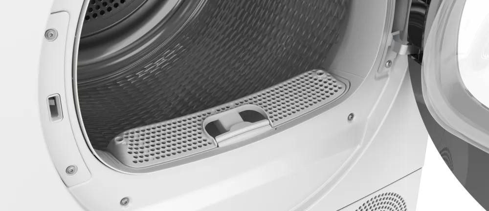 Технологическое ядро сосредоточено вокруг энергоэффективного теплового насоса и конденсационной схемы с возможностью как самостоятельного сбора конденсата в контейнер, так и отвода напрямую в канализацию, что повышает гибкость эксплуатации. Класс энергопотребления B и потребляемая мощность 0.83 кВт демонстрируют сбалансированность между эффективностью и экономией. Система Smart Dry автоматически подбирает оптимальную программу, а AutoDry следит за остаточной влажностью, чтобы ткани не пересушивались; пользователь может дополнительно регулировать температуру и выбрать режим сушения по времени (холод/тепло).