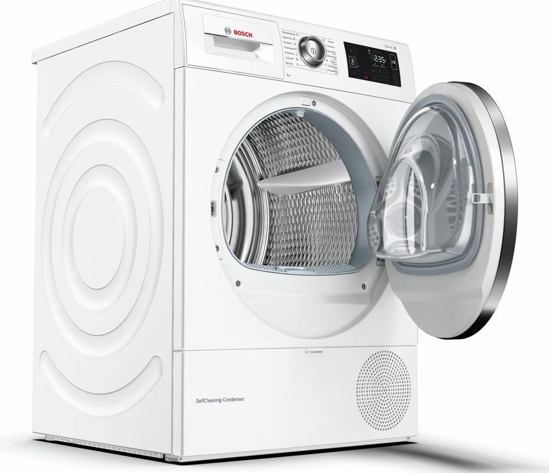 BOSCH WTW876H0OE имеет конденсационный тип сушки с применением теплового насоса, что значительно увеличивает эффективность процесса и снижает потребляемый расход энергии. Стандартный двигатель, проверенный временем, не дает сбоев. Максимальная загрузка составляет 9 кг. Класс энергоэффективности A++ позволит сократить траты на электричество. Электронное управление осуществляется по средствам поворотных переключателей и сенсорных клавиш Touch control. Большой многофункциональный LED-дисплей отображает необходимую информацию о работе. Барабан выполнен из нержавеющей стали устойчивой к воздействию влаги и высоких температур. Отвод конденсата может осуществляться напрямую в канализацию. По завершении цикла вы услышите приятный звуковой сигнал. Максимальное время отсрочки старта составляет 24 часа. В стандартный комплект входят корзина для сушки шерсти, самоочищающийся конденсатор и ворсовый фильтр. Гарантия от производителя составляет 12 месяцев.